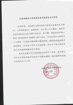 近年来,学校除了建立了校内实践基地外,还陆续与安徽众信会计师事务所、安徽华为会计师事务所签订了校外实习基地的协议书。我校会计专业学生可以根据教学需要随时到有关实习基地进行实习教学“演练”。同时,各实习基地单位也都能根据我校教学要求,派出技能优秀的相关人员进行实习指导,有力地保证了校内外、校外实习效果。