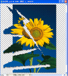 2. 制作如图所示的撕纸效果(用到滤镜中“像素化”->“晶格化”)。