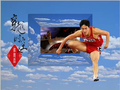 10. 利用素材图6-27、6-28、6-29、6-30制作体育广告“穿越时空”效果图(图6-31)。